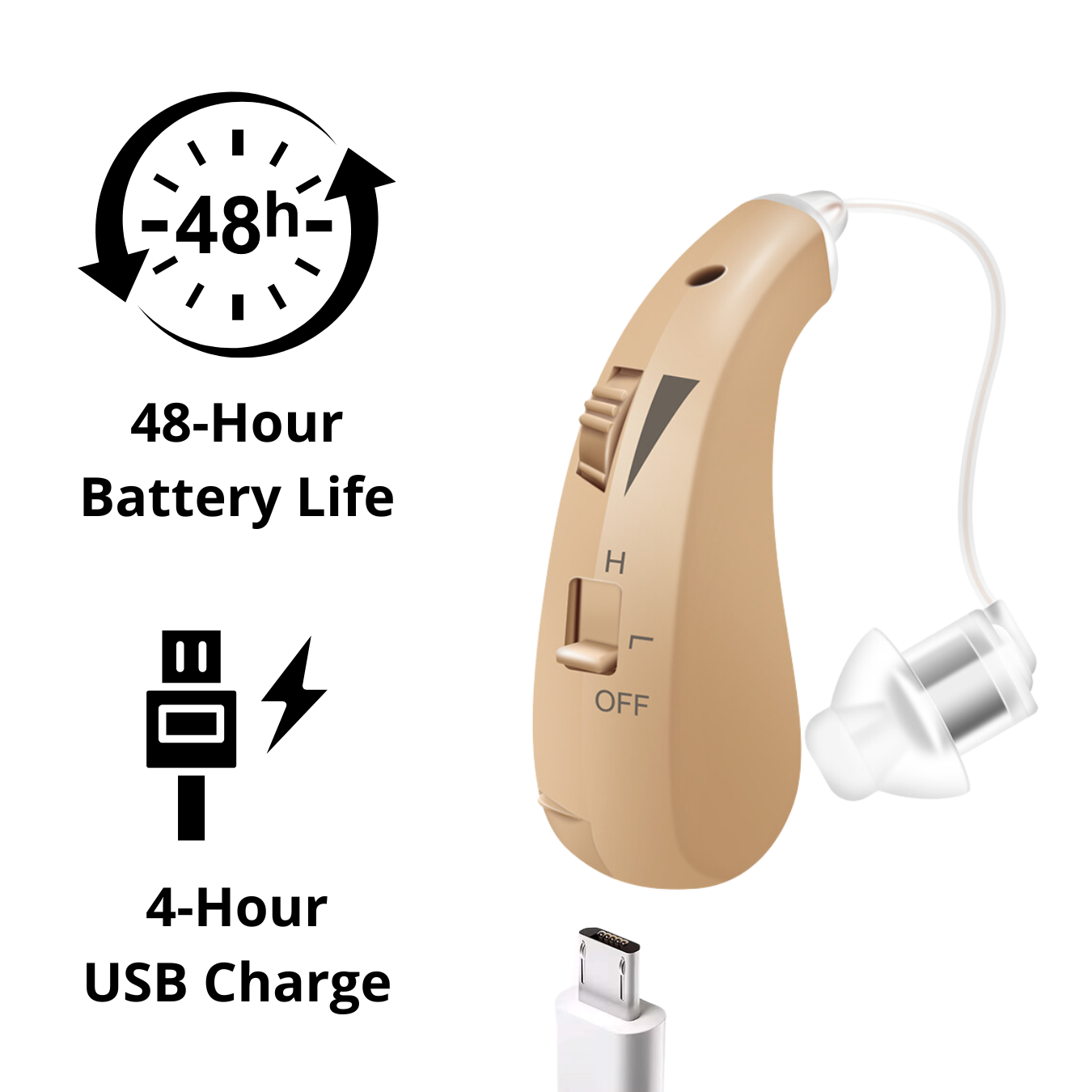 With just a single 4-hour charge (which you can do overnight), you'll enjoy 48 hours of continuous, crystal-clear hearing support!